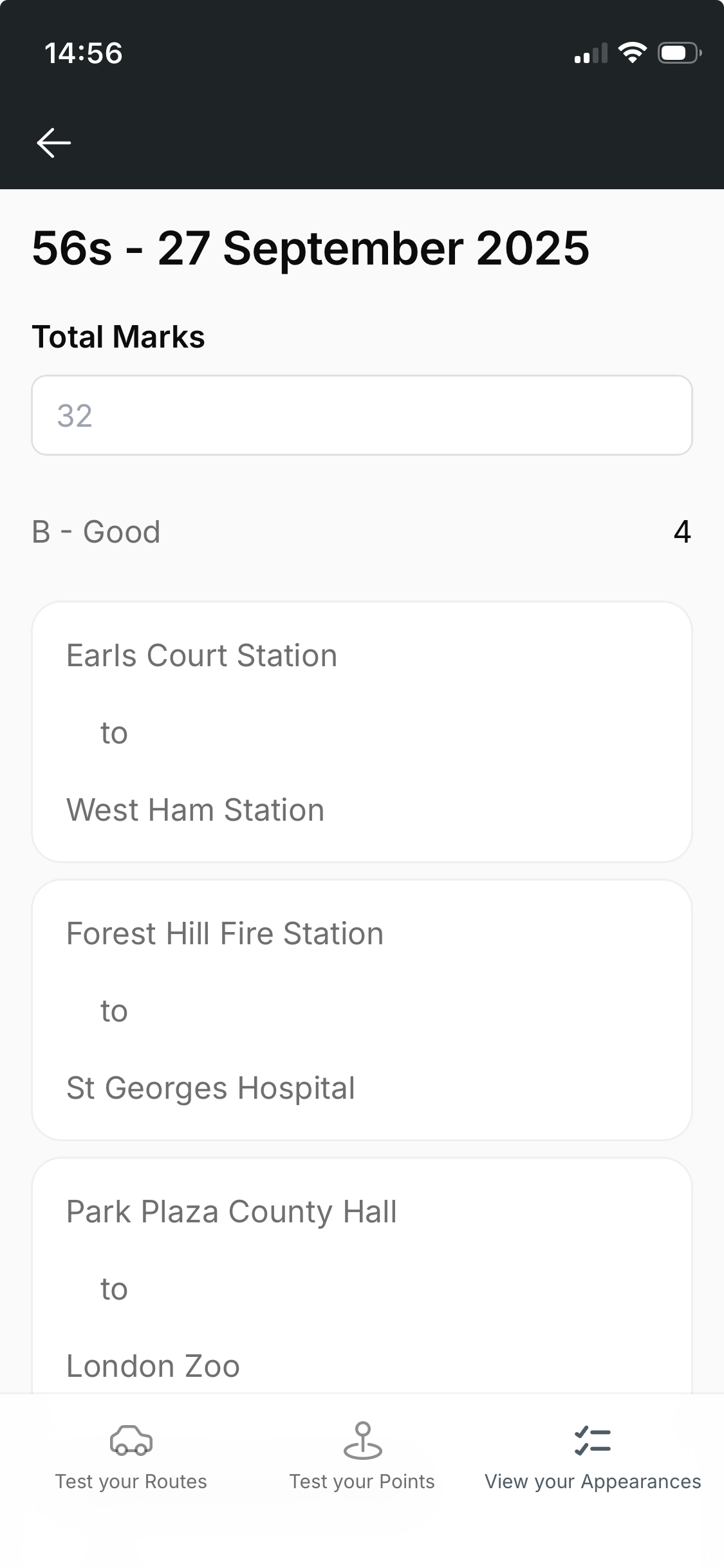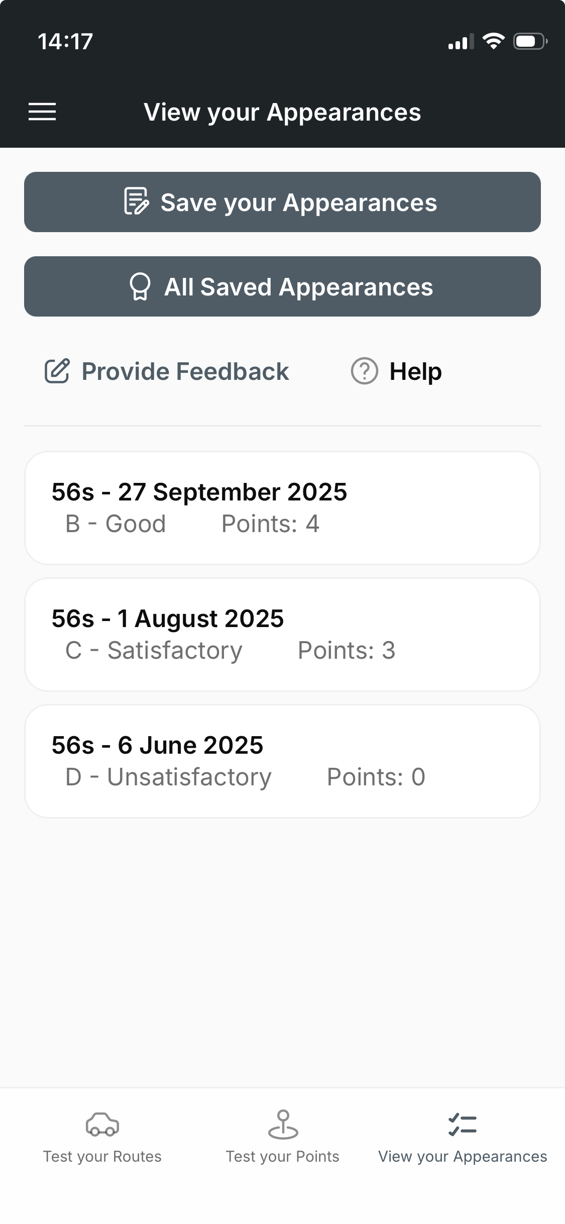 Stop asking friends and family to test you, use the Test your Knowledge app instead. Helps you practice points and appearance routes anytime, anywhere.